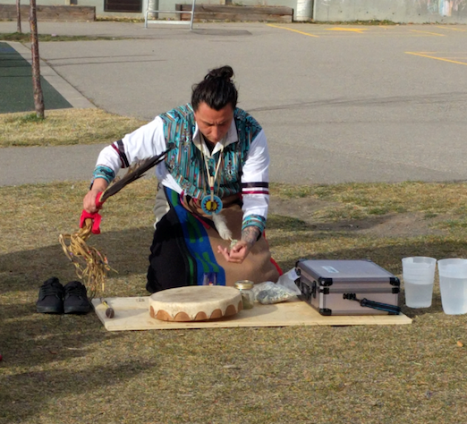 Smudging is a tradition common to many Indigenous peoples, which involves the burning of one or more medicines gathered from the earth. The four most common sacred medicines used in Indigenous ceremonies are tobacco, sage, cedar and sweetgrass. For this smudge, Ryan burned cedar. Students were not invited to inhale the smoke created from the smudge. Students sat in circular formation with Ryan facing the eastern most point. The ceremony itself was about 20-30 minutes long.